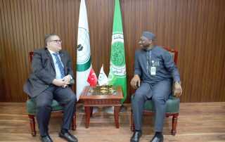 استقبل معالي الأمين العام لمنظمة التعاون الإسلامي معالي الدكتور يوسف بن أحمد العثيمين ظهر يوم الإثنين 12 من جمادى الثانية 1442ه الموافق 25 يناير 2021 م بمكتبه بمقر الأمانة العامة للمنظمة بمدينة جدة معالي الأستاذ الدكتور قطب مصطفى سانو الأمين العام لمجمع الفقه الإسلامي الدولي الذي قدم للقاء بمعاليه بمناسبة صدور كتاب الإصدار الرابع لقرارات وتوصيات المجمع.