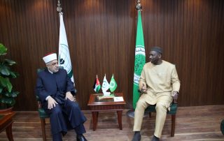 وقد رحَّب سعادته بمعاليه والوفد المرافق له شاكرا له هذه الزيارة الكريمة، ومُعبِّرا له عن سعادته بالذكريات الطيبة والنتائج المثمرة للقاء الأول الذي جمعه بمعاليه في شهر ديسمبر الماضي بمقر الأمانة العامة للمجمع، كما أكَّد سعادته لمعاليه تَطلُّعِه إلى مزيد من علاقات التعاون والتنسيق بين مجمع الفقه الإسلاميِّ الدوليِّ والسلطات المعنية بشؤون الديانة الإسلامية بالجمهورية الفرنسية، مطمئنا معاليه بأن الحكومة الفرنسية تكن كل احترام وتقدير للدين الإسلامي وللعالم الإسلامي اعتبارا بأن الإسلام يمثل ثاني أكبر ديانة يدين بها المواطنون الفرنسيون، مما يدل على أهمية الديانة الإسلامية في فرنسا، مؤكدا على عدم وجود صراع بين فرنسا والإسلام.