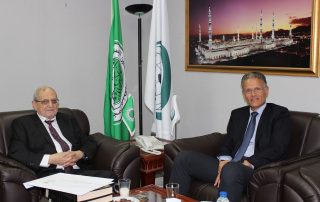 تقديرا للزيارة الكريمة التي قام بها السيد ألن كراوس رئيس قسم الشؤون السياسية بالقنصلية العامة للولايات المتحدة الأمريكية على رأس وفد كبير لمقر الأمانة العامة للمجمع قبل أشهر، وسعيًا إلى تعزيز علاقات التعاون والشراكة والتواصل بين مجمع الفقه الإسلامي الدولي والمؤسسات العلمية الأمريكية التي تنشط في مجال الحوار والتواصل وخاصة حوار أتباع الأديان، وتحالف الحضارات، قام معالي الأستاذ الدكتور قطب مصطفى سانو الأمين العام لمجمع الفقه الإسلامي الدولي صباح يوم الأربعاء 19 من رجب 1442ه الموافق 3 من مارس 2021م بزيارة لمقر القنصلية العامة للولايات المتحدة الأمريكية بجدة، حيث كان في استقبال معاليه والوفد المرافق له سعادة الأستاذ/راين م.كليها القنصل العام ومندوب الولايات المتحدَّة الأمريكيَّة لدى منظَّمة التعاون الإسلاميِّ بجدَّة.
