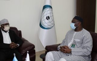 ب- التنسيق بين المجمع وبين المؤسسات العلمية الأخرى التي تهتم بموضوع تطبيق الشريعة الإسلامية، وتعد الخطط والوسائل والدراسات الكفيلة بإزالة العقبات والشبهات التي تعيق تطبيق الشريعة في البلاد الإسلامية.