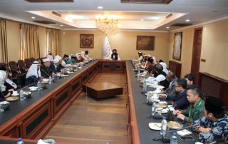ومن جانبه، أعرب معالي الأمين العام، رئيس الوفد، عن شكر الوفد لمعاليه على إتاحته الفرصة للقاء به على الرغم من كثرة انشغالاته، كما أعرب عن امتنان الوفد للسلطة الحاكمة على ما لقيه الوفد من ترحيب عظيم، واستقبال حسن، وضيافة كريمة، مشيدا باللقاء التاريخي الذي جمع لأول مرة بين وفد علماء المسلمين وعلماء أفغانستان البارزين قبل يوم.