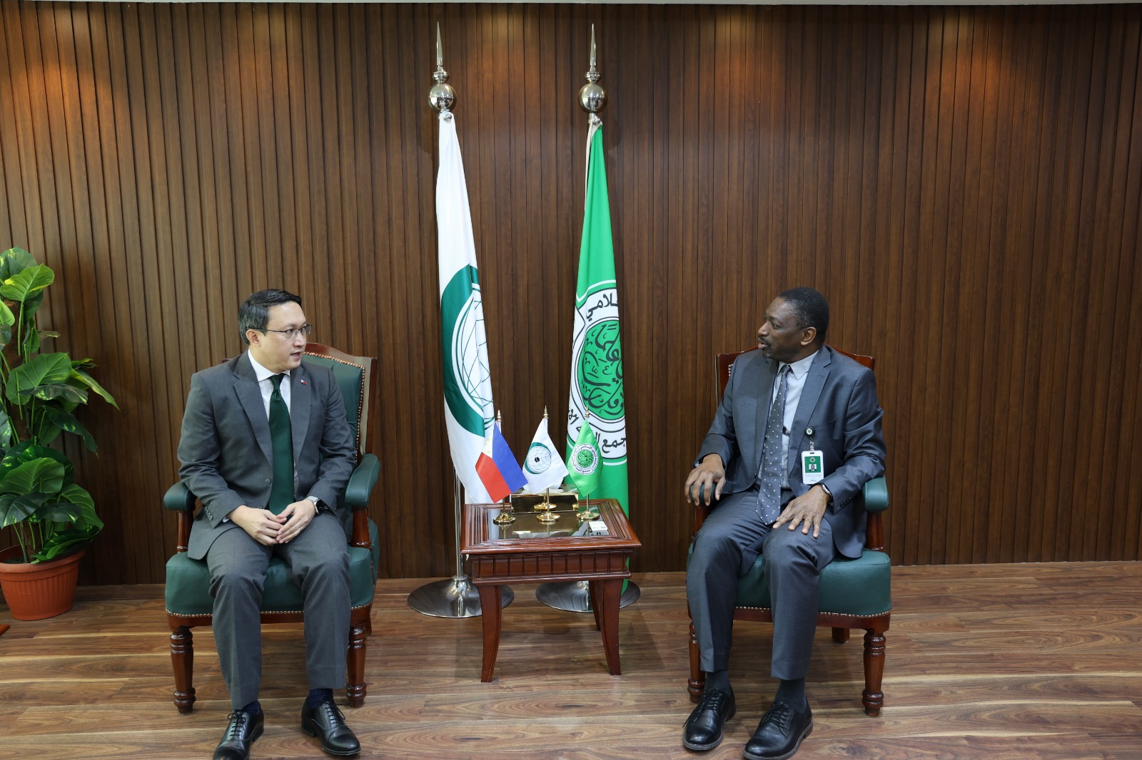 ومن جانبه، أعرب سعادته عن بالغ شكره، وعظيم امتنانه لمعاليه على حسن الاستقبال، وحفاوة الترحيب، مؤكدًا حرصه على تعزيز علاقات التعاون والشراكة والتواصل والتنسيق مع المجمع ، كما أشاد بالدور الكبير للمجمع وما يقدّمه بقيادة معاليه من فكر معتدل ورصين، وجهود متميزة لنشر الاعتدال والتسامح والتعايش السلمي بين الأديان، وأعرب عن تطلّعه إلى ترسيخ عُرى التعاون والتنسيق بين المجمع والمؤسسات الدينية الرائدة بالفلبين، من أجل خدمة الأهداف الإنسانية النبيلة التي تعزّز التعاون والتواصل بين الشعوب.