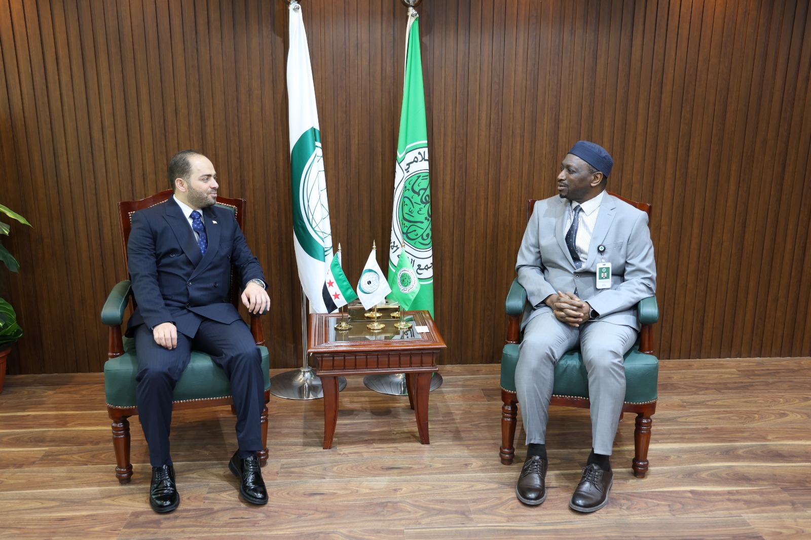 من جانبه، رحّب معاليه بعودة الجمهورية العربية السورية إلى منظمة التعاون الإسلامي، معربًا عن اعتزازه بالدور العلمي المتميز الذي اضطلع به علماء سوريا منذ تأسيس المجمع، وما قدموه من إسهامات رائدة في إثراء مسيرته العلمية والفكرية، مشيدًا بما تحقق للجمهورية العربية السورية من استعادة مكانتها الفاعلة في المجتمع الدولي، ومؤكدًا أهمية هذه العودة في تعزيز حضورها ومساهمتها في العمل الإسلامي المشترك، كما أكد على أهمية الإسراع في تعيين ممثل للجمهورية العربية السورية في المجمع، بما يعزز مشاركتها الفاعلة في أعماله ومداولاته، داعيًا إلى توقيع اتفاقية تعاون مع وزارة الأوقاف السورية لتطوير العلاقات الثنائية وتوسيع مجالات التنسيق والتعاون المشترك.