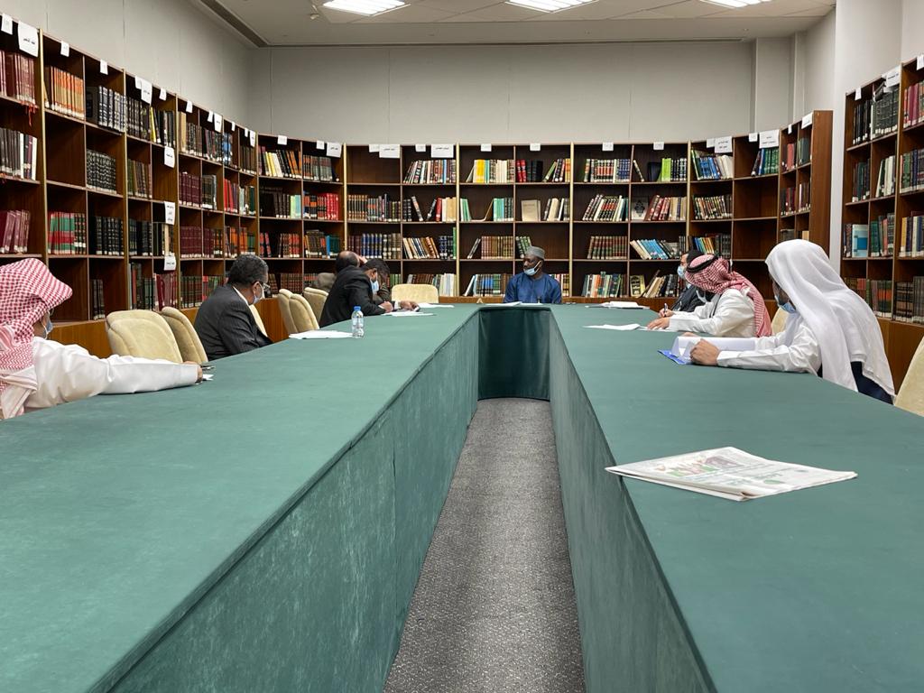 H.E. Prof. Koutoub Mustafa Sano, Secretary-General of the Academy, held on Sunday 19 Jamada al-Akhira 1442, corresponding to 1 February 2021, the 17th periodic meeting of the directors of the Academy’s departments. His Excellency opened the meeting by thanking the publications and dedication committee members for their esteemed efforts in inventorying and arranging the contents of the main warehouse located at Quraysh Street in Jeddah and for meeting the deadlines of this task.