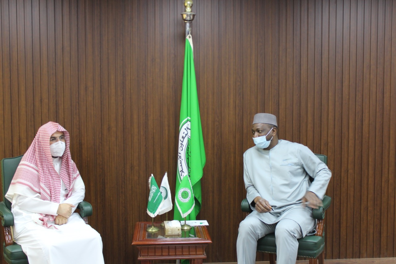 As part of the discussions held in Riyadh with H.E. Sheikh Abdul Aziz bin Abdullah Aal-Sheikh, Grand Mufti of the Kingdom, President General of Scientific Research and Ifta and Head of the Council of Great Scholars, H.E. Prof. Koutoub Moustapha Sano, Secretary General of the Academy, received on Sunday morning 2 Rajab 1442 corresponding to 14 February 2021 in his office in Jeddah, the Secretary General of the Council of Senior Scholars of Saudi Arabia, H.E. Dr. Fahd bin Saad Al-Majid and the accompanying delegation.