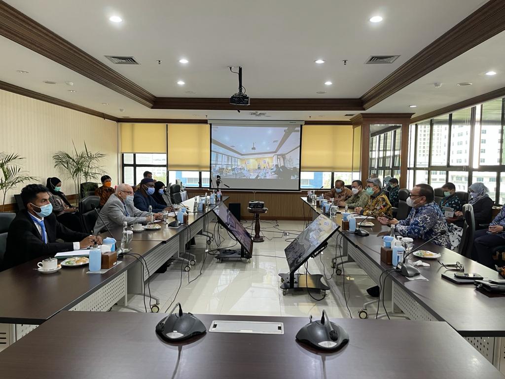 On behalf of Her Excellency the Finance Minister of Indonesia, Mr. Astra Pramanto Bakhti, Director General of Financial Budget and Secretary General of the Indonesian Association of Islamic Economics, received H.E. Prof. Koutoub Moustapha Sano, Secretary General of the Academy, on Thursday 29 Shawal 1442 corresponding to 10 June 2021, at the headquarters of the Ministry of Finance in Jakarta. His Excellency expressed his thanks to the Secretary General of the Academy and the accompanying delegation for their response to the invitation of Her Excellency the Minister of Finance to visit Indonesia during circumstances that prevented her from meeting the delegation due to Her Excellency’s mission outside Jakarta. He nevertheless conveyed to them the greetings and thanks of Her Excellency the Minister.