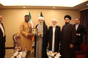 The meeting began with the recitation of verses from the Holy Qur’an, then His Eminence Sheikh Al-Shahriari delivered a speech in which he expressed WFPIST’s great pride in the participation of H.E. Prof. Koutoub Moustapha Sano in its annual conference this year, and the International Islamic Fiqh Academy’s reliable and pioneering authority in the field of spreading the values of moderation, tolerance, and coexistence. He also expressed his great happiness with the signing of a cooperation agreement between the two institutions, hoping that this would be a blessed beginning for close and deep cooperation between the two institutions in various fields of common interest.