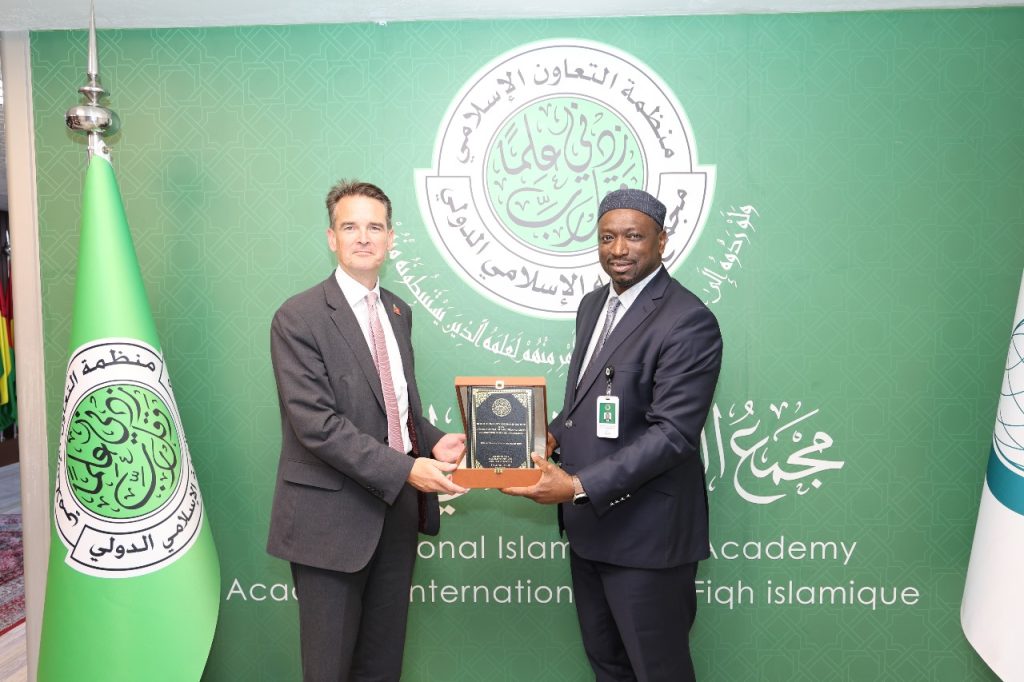 In line with the desire of the International Islamic Fiqh Academy to strengthen cooperation and coordination with scientific institutions and centers, H.E. Prof. Koutoub Moustapha Sano, Secretary General of the Academy, received a delegation from the University of Birmingham, United Kingdom, headed by H.E. Prof. Robin Mason, Vice Chancellor of the University, and H.E. Ms. Cecile Al-Balidi, Consul General of the United Kingdom in Jeddah on Thursday, 05 Jumada Al-Akhira 1446, corresponding to 08 November 2024, at the Academy’s headquarters in Jeddah.