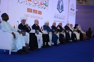 S.E. Prof. Koutoub Moustapha Sano, Secrétaire Général de l’Académie internationale du Fiqh islamique (AIFI), dont le siège se trouve à la Porte des Deux Saintes Mosquées, dans la ville de Jeddah en Arabie Saoudite, a représenté et transmis les salutations de S.E. M. Hussein Ibrahim Taha, Secrétaire Général de l’Organisation de la Coopération islamique (OCI), ainsi que les salutations des érudits de la Oumma, membres et experts de l’AIFI, qui experiment tous leurs profonds remerciements et leur gratitude à S.E. M. Abdel Fattah El-Sisi, président de la République arabe d’Égypte, à son sage gouvernement et à son peuple, pour l’accueil chaleureux et l’hospitalité qu’ils leur ont réservés depuis qu’ils ont posé le pied sur la terre protégée d’Égypte. Son Excellence a également félicité le grand moufti d’Égypte, S.E. Cheikh Dr. Shawqi Allam, et l’a remercié pour la préparation et l’organisation de cette conférence, où les erudits musulmans se reunissent pour discuter des moyens à relever les défis du troisième millénaire.
