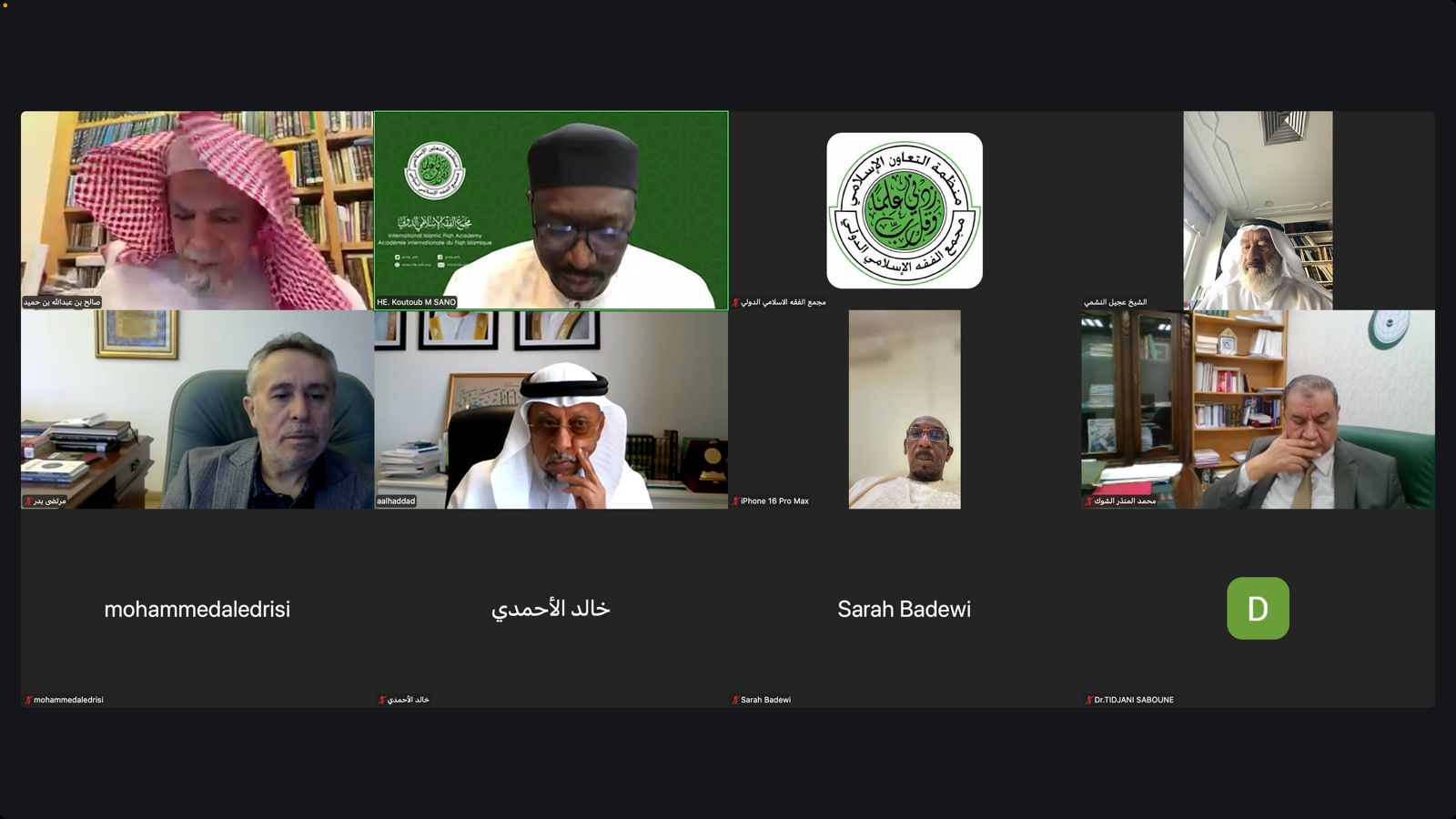 Le Bureau du Conseil de l’Académie a tenu sa première réunion pour l’année 1447 H / 2025 et ce le lundi 28 Rabi’ al-Thani 1447 AH, correspondant au 20 octobre 2025, par vidéoconférence. La réunion était présidée par Son Excellence Cheikh Dr Saleh bin Abdullah bin Humaid, président du Conseil de l’Académie et vice-président du Bureau, et a vu la participation de Son Excellence le professeur Dr Koutoub Mustapha Sano, Secrétaire Général de l’Académie, et en présence des membres du Bureau: