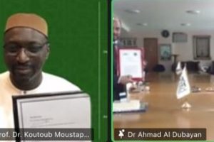Dans le cadre des efforts de l'Académie internationale du Fiqh islamique (AIFI) d'établir des relations de partenariat avec des institutions et des centres scientifiques et de recherche impiqués dans la diffusion de la modération, de la tolérance, de la coexistence et de l'harmonie entre les adeptes des religions, et afin de permettre à ces institutions et à ces centres de tirer profit des résolutions et des recommandations de l'Académie qui comprennent des solutions efficaces pour de nombreux problèmes de la vie contemporaine et des questions émergentes, S.E. Prof. Koutoub Moustapha Sano, Secrétaire général de l'Académie, et S.E. Dr Ahmed Al-Dubayan, Directeur Général de la Mosquée Centrale de Londres et de son Centre culturel islamique, ont signé par videoconference un mémorandum de coopération le vendredi 18 Dhul Quida 1443 correspondant au 17 juin 2022.