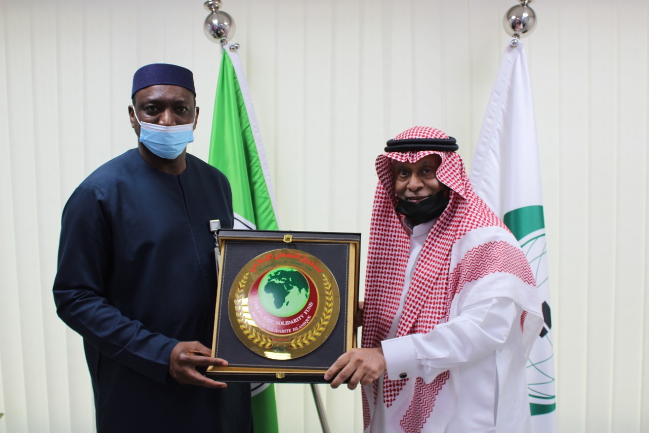 As part of the efforts to discuss and implement the aspects and modalities of cooperation and joint consultation between the OIC bodies and institutions and the Academy, H.E. Prof. Koutoub Sano, Secretary General of the Academy, received in his office at the Academy’s headquarters in Jeddah on the morning of Thursday 26 Shaban 1442, corresponding to 8 April 2021, a delegation from the Islamic Solidarity Fund of the Organization of Islamic Cooperation, led by Mr. Ibrahim bin Abdullah Al-Khuzayem, Executive Director of the Fund, accompanied by Mr. Hani Siraj Tayeb, Financial Officer of the Fund, and Mr. Abdul Raziq Muhammad Abdul Raziq, Projects Director.