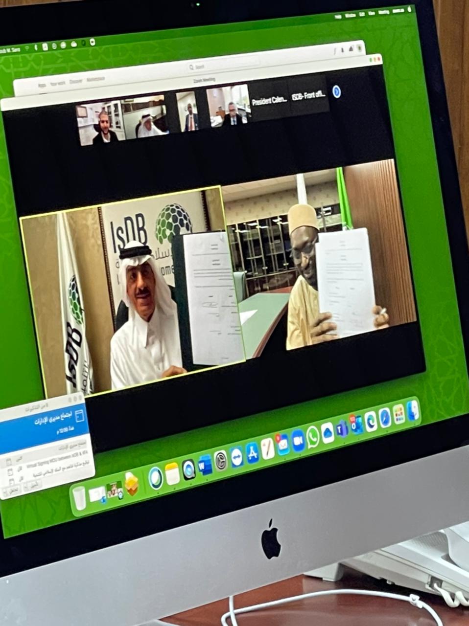 His Excellency Prof. Koutoub Moustapha Sano, in his capacity as Secretary General of the International Islamic Fiqh Academy, signed on Sunday 20 Ramadan 1442 corresponding to May 2, 2021, a cooperation agreement with His Excellency Dr. Bandar Hajjar, President of the Islamic Development Bank Group (IsDBG), in his capacity as Director of the Endowment Properties Investment Fund. The agreement aims to put in place the appropriate framework through which the contributions of the International Islamic Fiqh Academy are received and managed according to the policies and regulations of the fund, whereby the bank, according to this agreement, undertakes the investment of those contributions as the owner of the Endowment Properties Investment Fund, which is a trust fund that aims to mobilize financial resources for the purpose of creating a financing mechanism to enhance and develop the properties of the endowments that have economic viability in the Organization of Islamic Cooperation (OIC) member states and Muslim societies in non-member states.